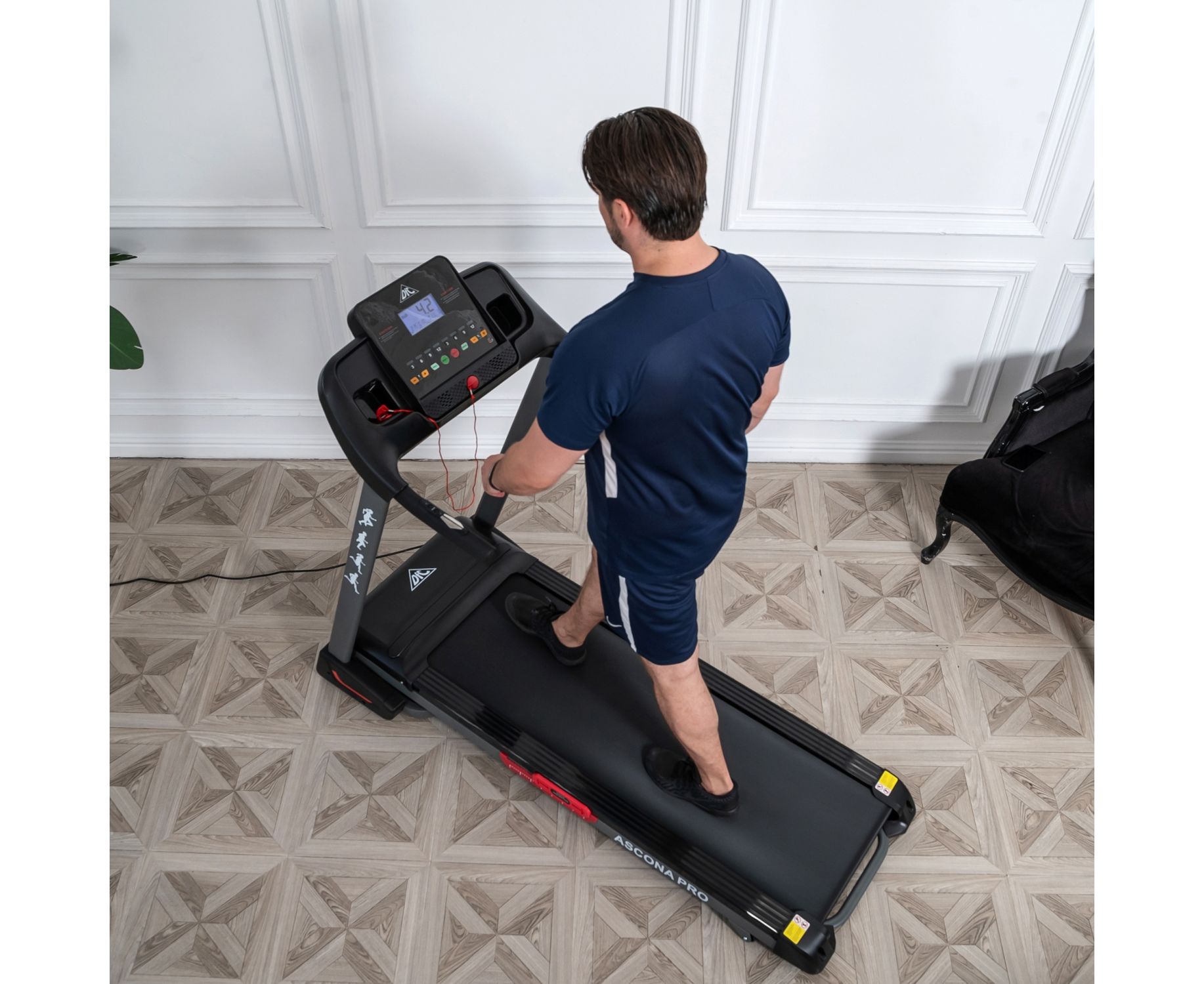 Угол наклона бегового полотна изменяется c помощью дополнительного встроенного электромотора.