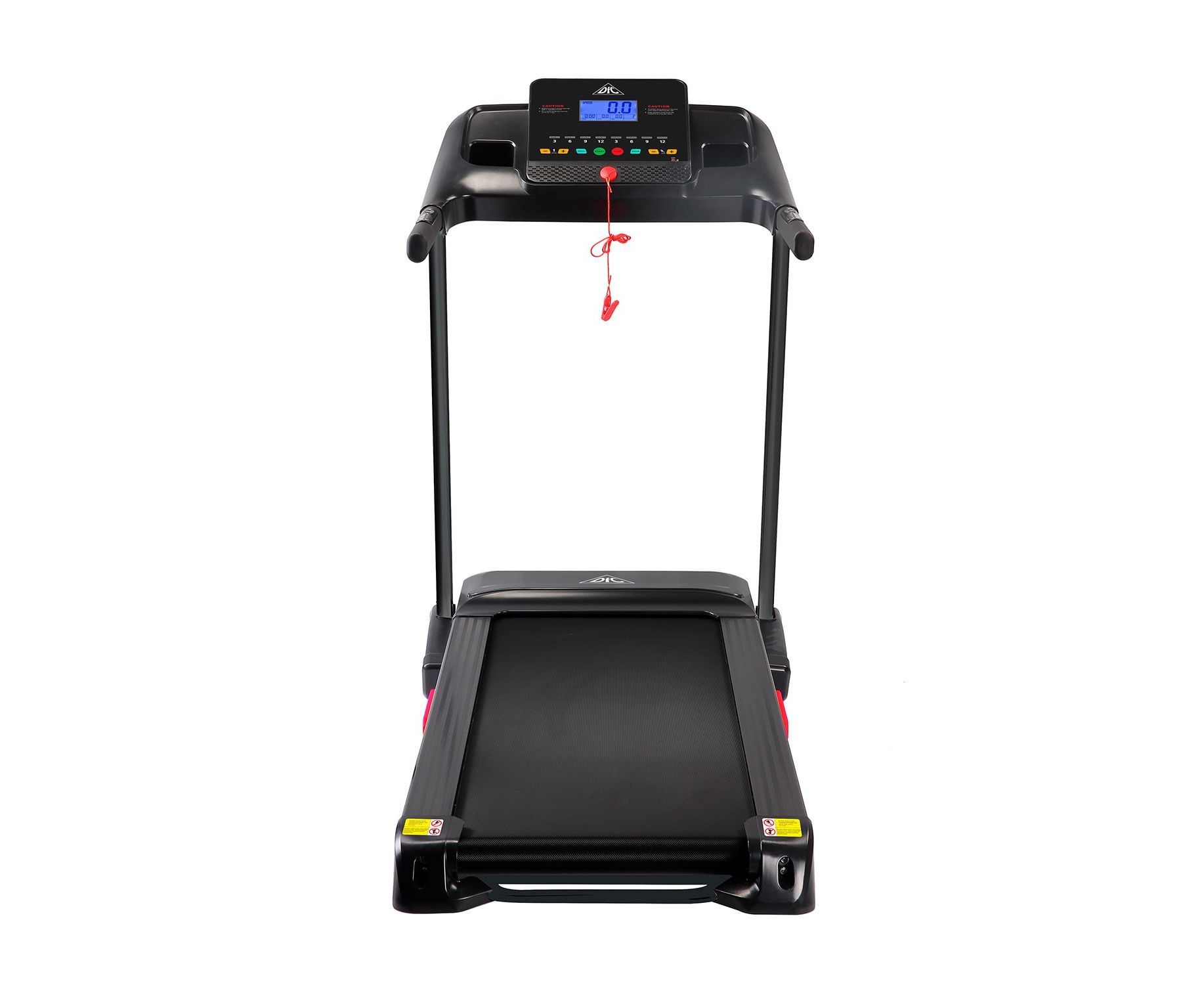 Дорожка имеет складную конструкцию для экономии пространства и встроенные колеса для перемещения дорожки после тренировки.