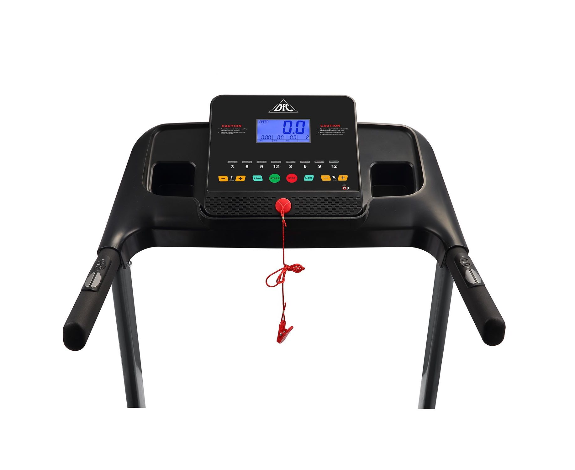 Два комплекта встроенных в поручни датчиков пульса позволят следить за частотой сердечных сокращений. Показания консоли: скорость, время, расстояние, калории, пульс. На поручнях так же расположены "быстрые кнопки" – это кнопки запуска и остановки бегового полотна, а также кнопки изменения скорости. Это позволяет не отрывать руки с поручней во время занятий не тренажере.