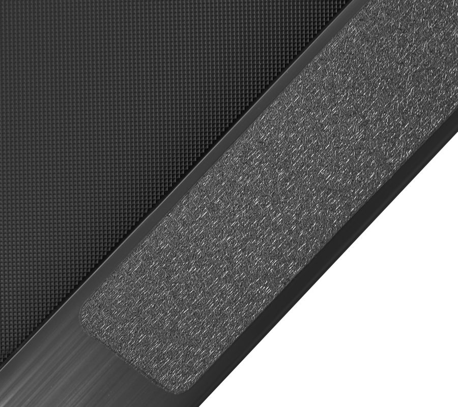 К другим преимуществам серии относятся компенсаторы неровностей пола, за счет которых можно точно зафиксировать тренажер на неровной поверхности. На поручнях находятся сенсорные датчики пульса, а также "быстрые" кнопки изменения скорости и угла наклона. Мультимедийная компонента представлена динамиками мощностью 3 Ватта с разъемами AUX и USB для подключения мобильных устройств и воспроизведения с них аудио-файлов. Приятной опцией является подставка под планшет или смартфон. И последний штриф, он чисто дизайнерский. По краям консоли и вдоль подставки под планшет проходит ярко-красный светодиод. При неярком освещении и без того эффектная высокотехнологичная дорожка смотрится как футуристичный продукт из будущего.