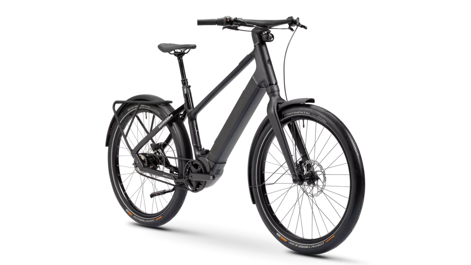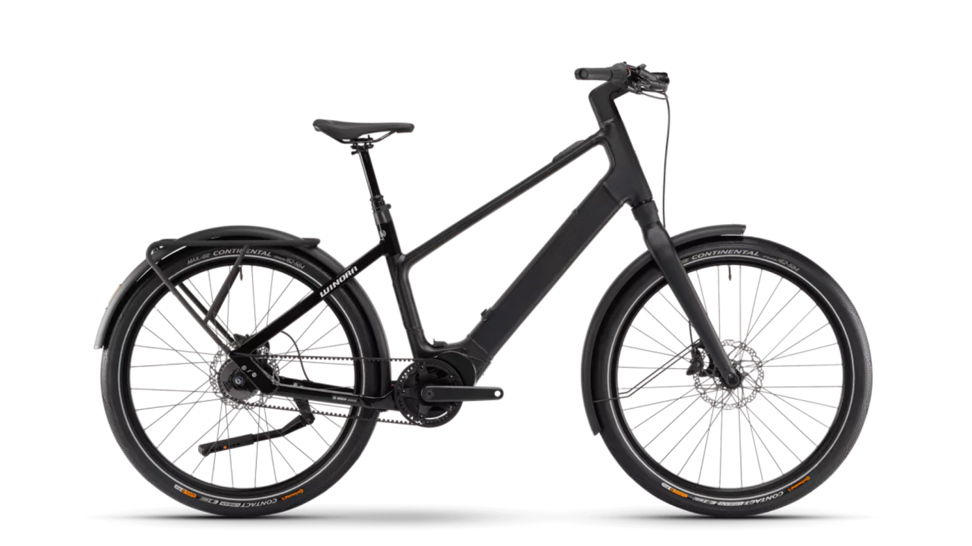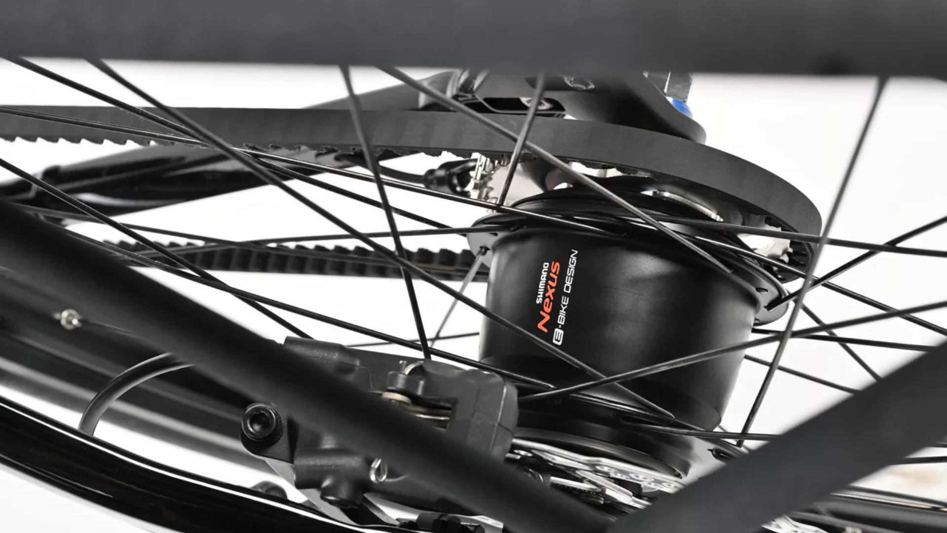 Winora iRide Pure R5F High оснащен легким (2 кг) двигателем Bosch Performance Line SX в сочетании с трубчатой батареей емкостью 400 Втч (2 кг), системным контроллером в верхней части нижней трубки и мини-пультом дистанционного управления, расположенным на руле. Полностью оснащенный (брызговики, подставка и багажная полка), iRide Pure R5F оснащен 5-ступенчатой ременной передачей в паре, встроенной в ступицу Shimano Nexus 5E. Для комфорта установлены эластомерная подвеска диаметром 25 мм на головке вилки, шины Continental Contact Urban Ballon 27,5 дюйма шириной 62 мм, а также подвесная телескопическая стойка сиденья.