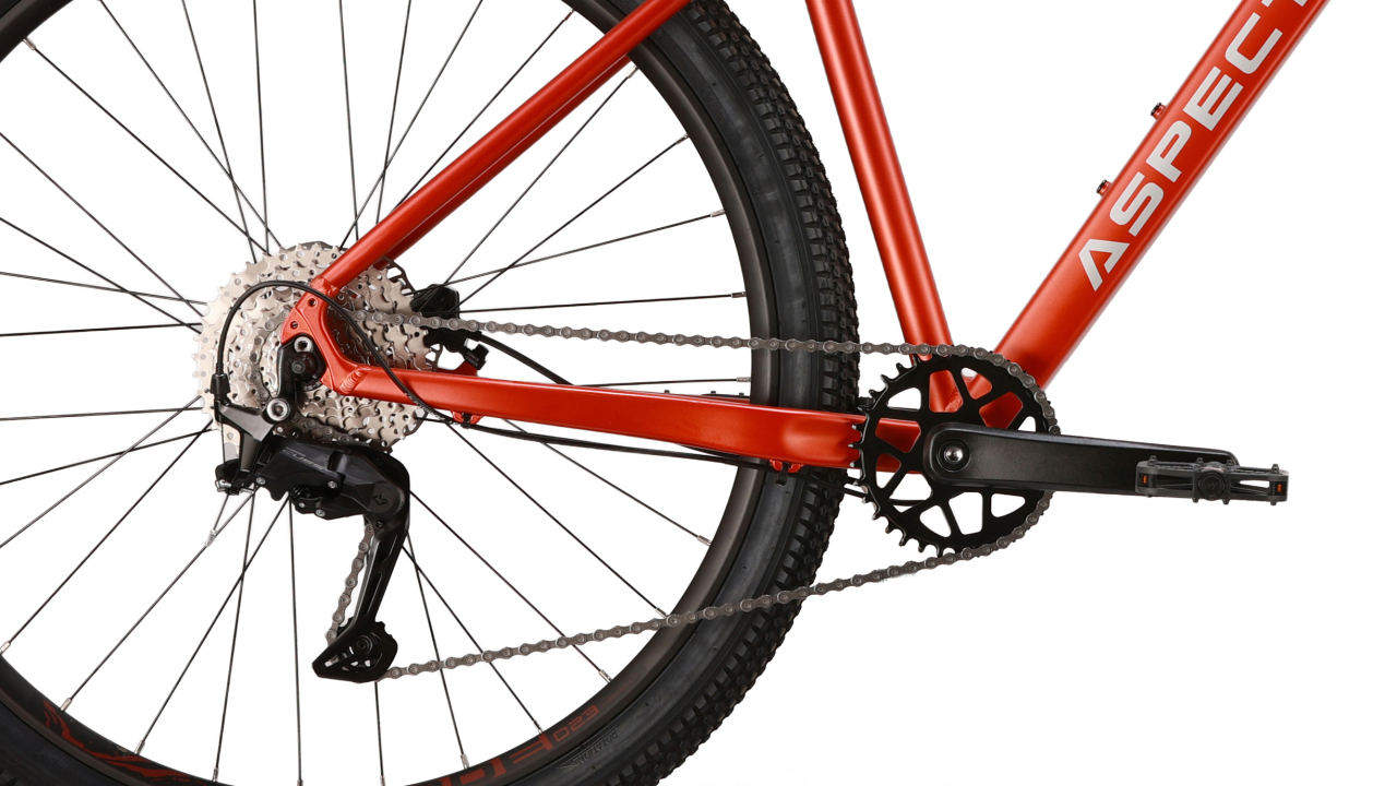 – Трансмиссия Shimano Cues 1×9 с кассетой 11–40T – удобный диапазон передач для подъёмов и равнинных участков.