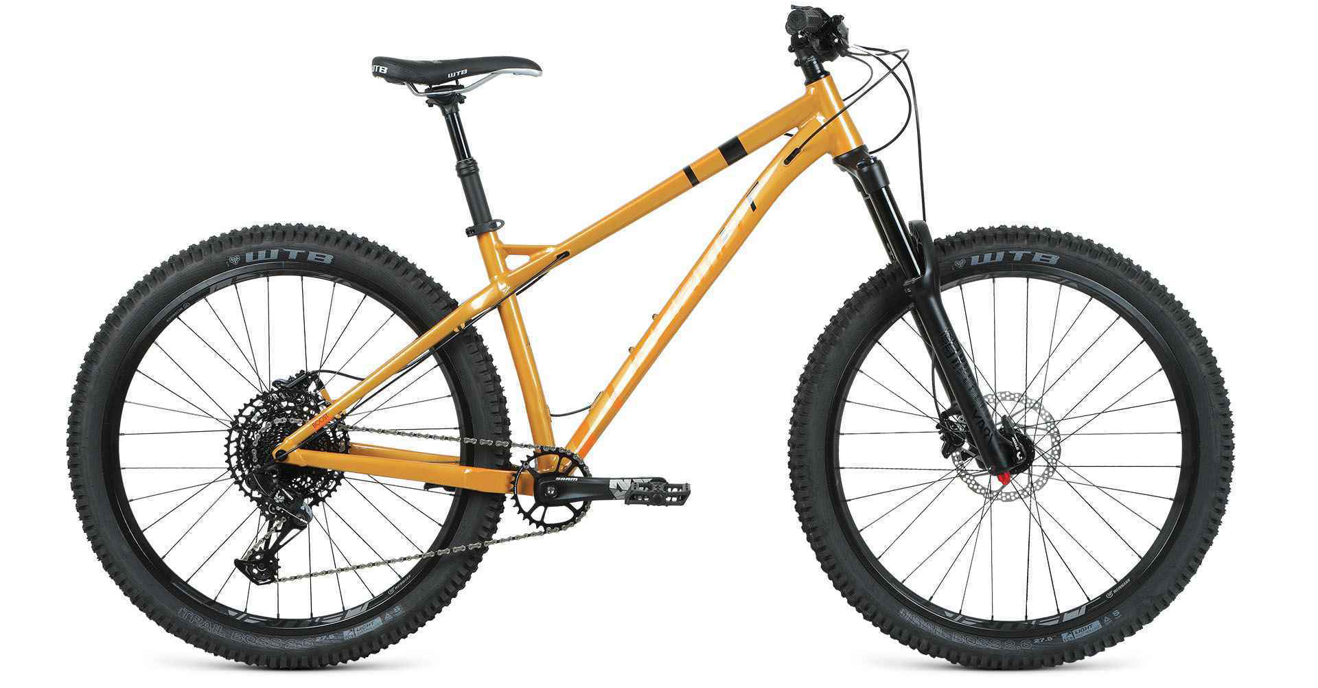 Велосипед для активного катания по сложным рельефам. Параметры рамы и особенность посадки заточены под катание с горы. Широкие колёса дают максимум уверенности во время спуска, а вилка с большим ходом делает велосипед контролируемым на корнях и камнях.