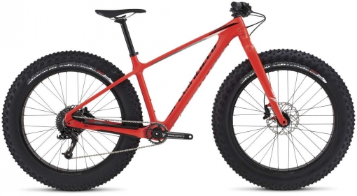 Технологичная рама из карбона с конусной рулевой, и внутренней проводкой всех кабелей для самых сложных условий эксплуатации. Трансмиссия 1x10 с широким диапазоном для тяги в крутые подъемы. Покрышки 4 дюйма отлично держат на любом покрытии и отлично катят даже на низком давлении.