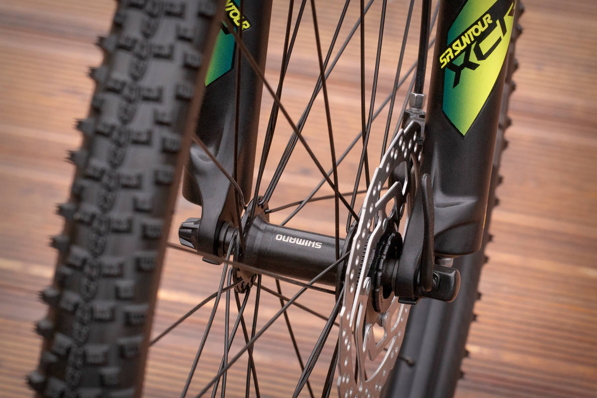 - Воздушная вилка Suntour с блокировкой.