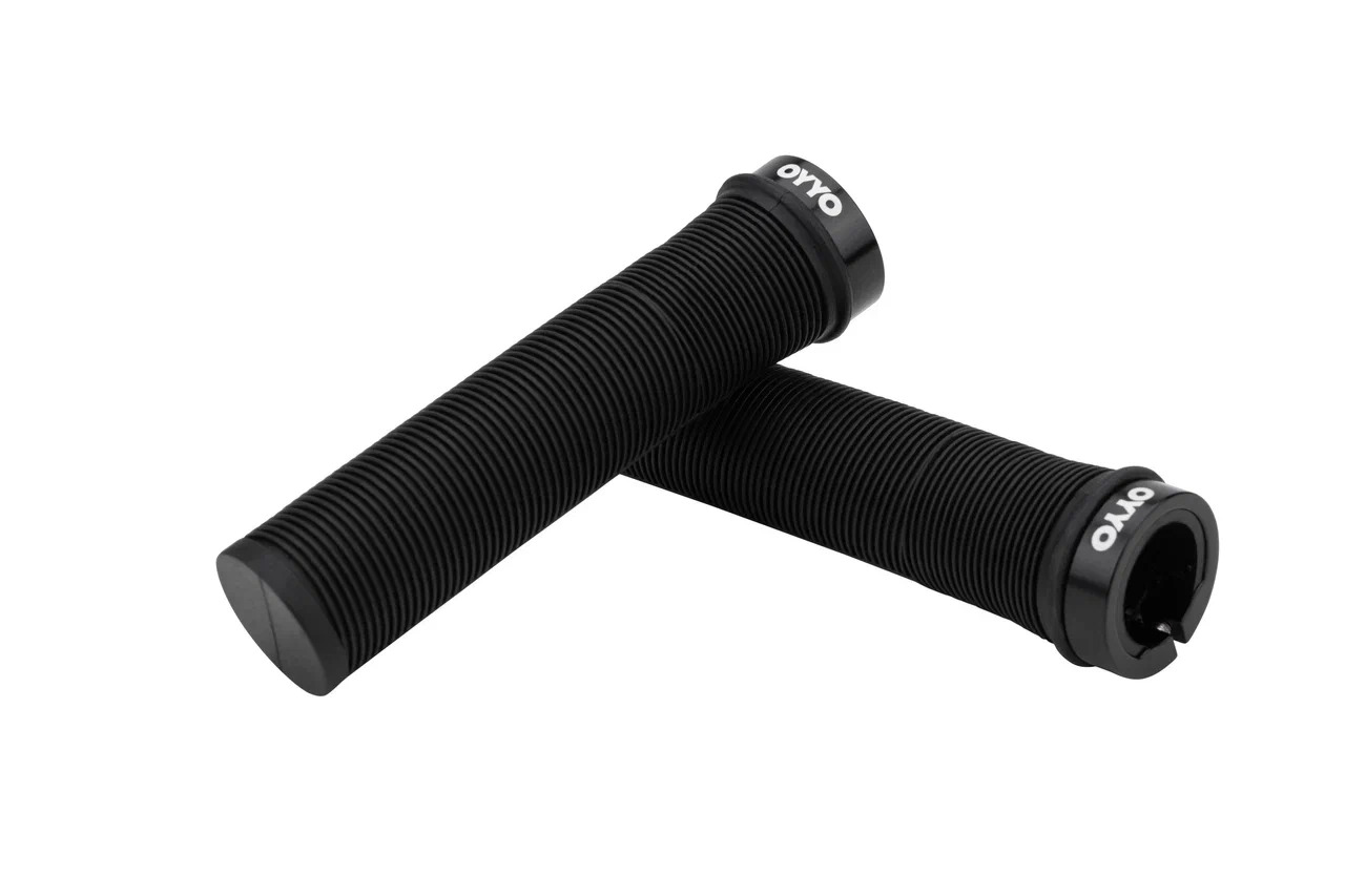 Благодаря продуманной структуре они обеспечивают отличное сцепление с ладонью и эффективно амортизируют неровности дороги. Крепятся на руль с помощью одностороннего стопорного кольца с винтов, изготовленного из алюминия (под руль Ø22,2 мм). В комплект также входят две пластиковые заглушки. Длина ручек - 130 мм.