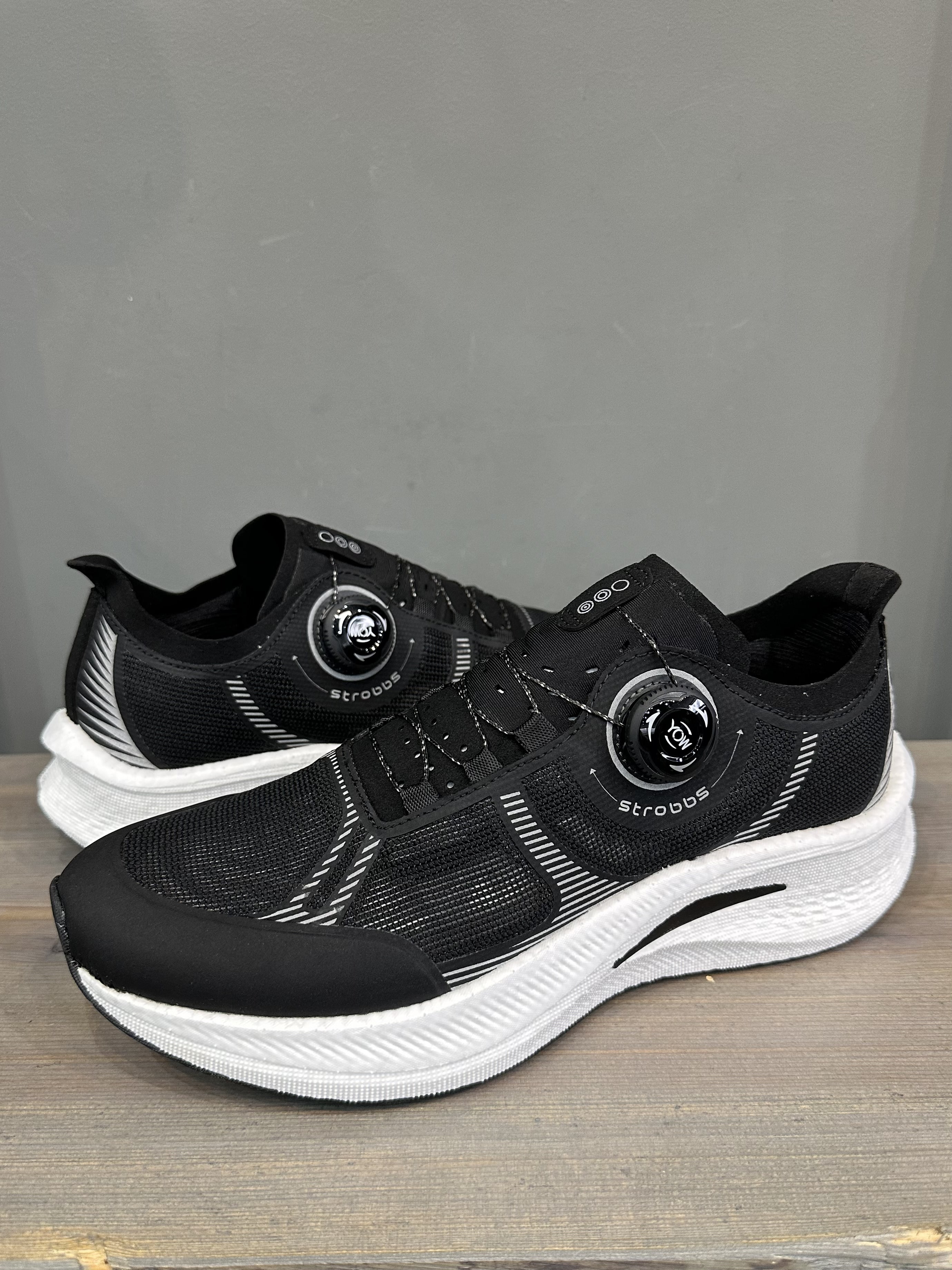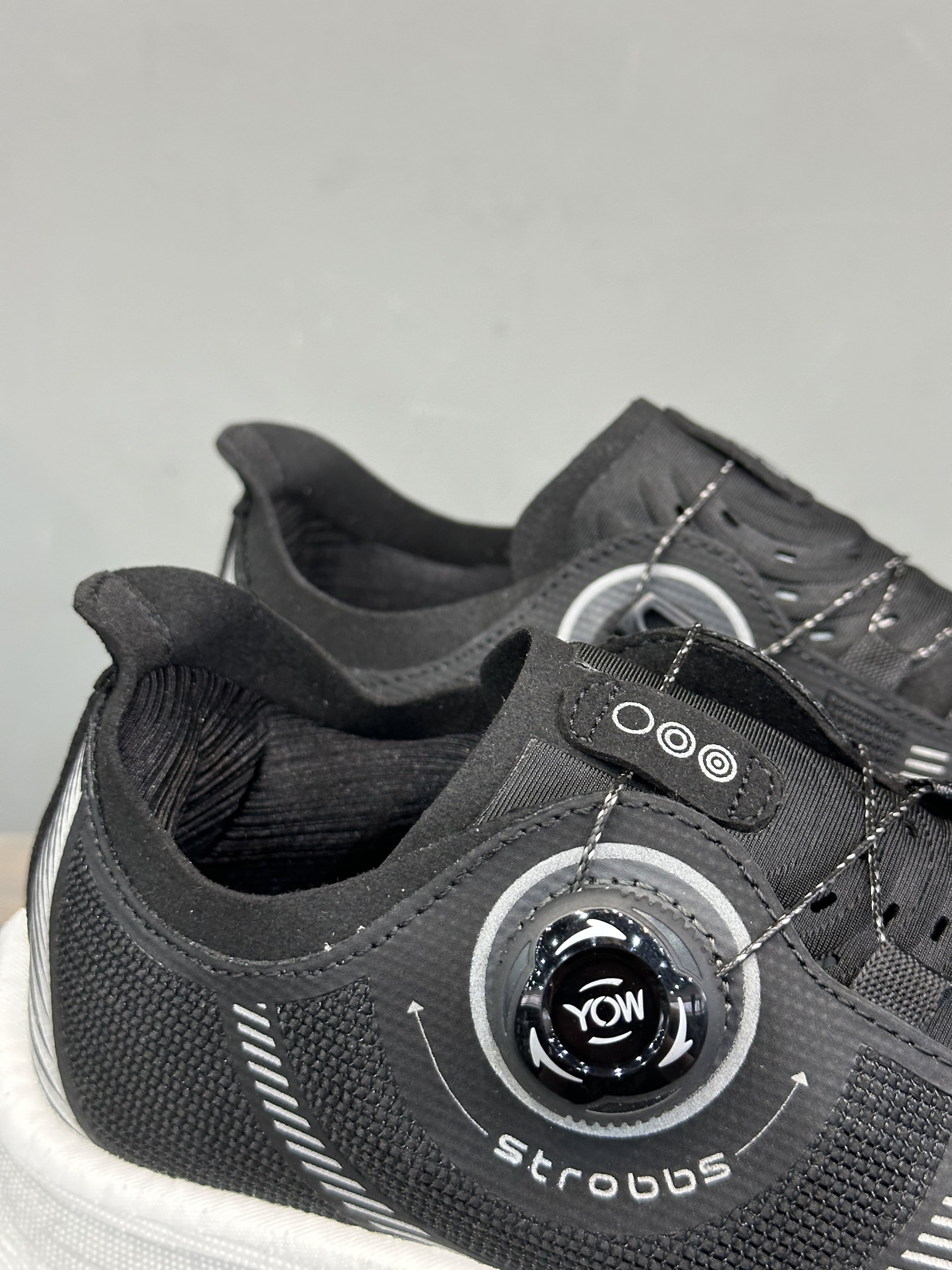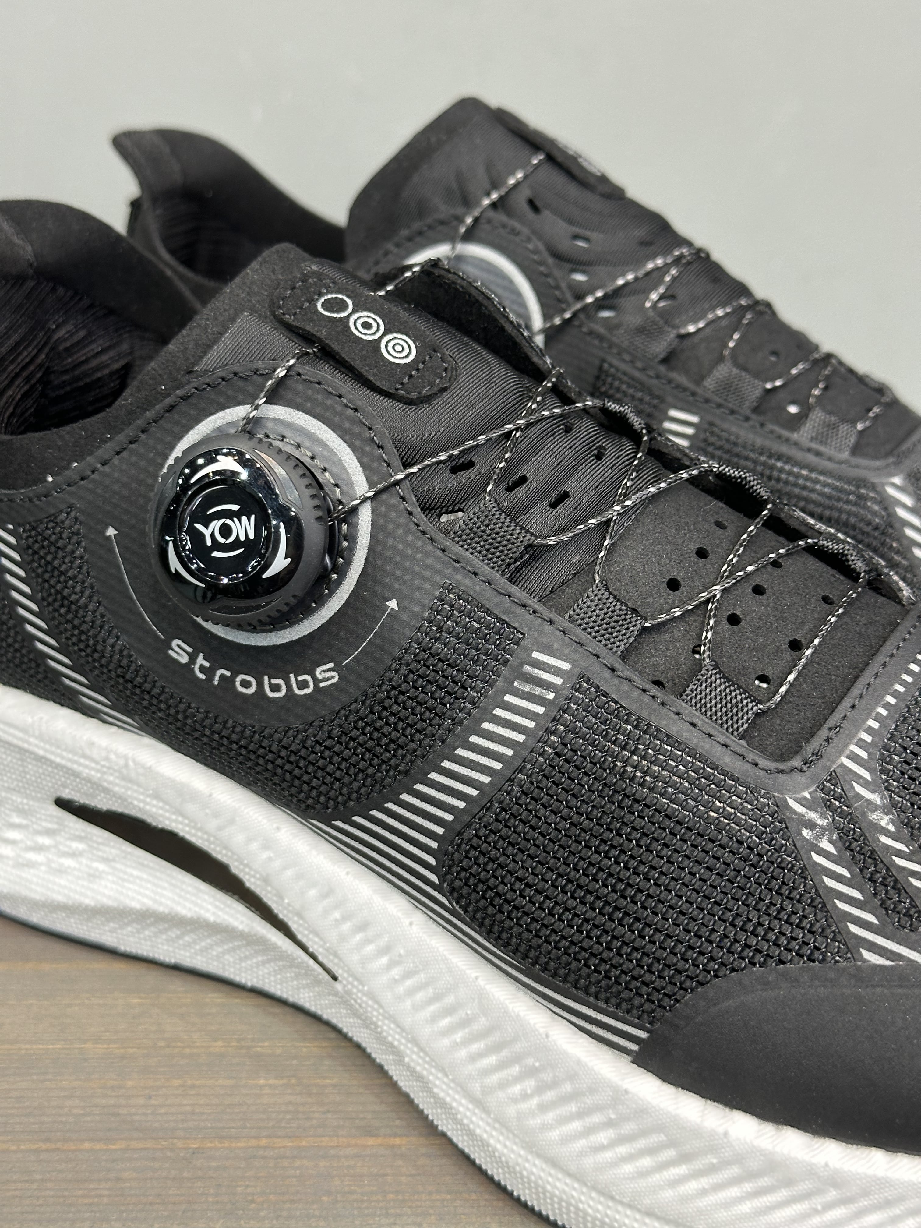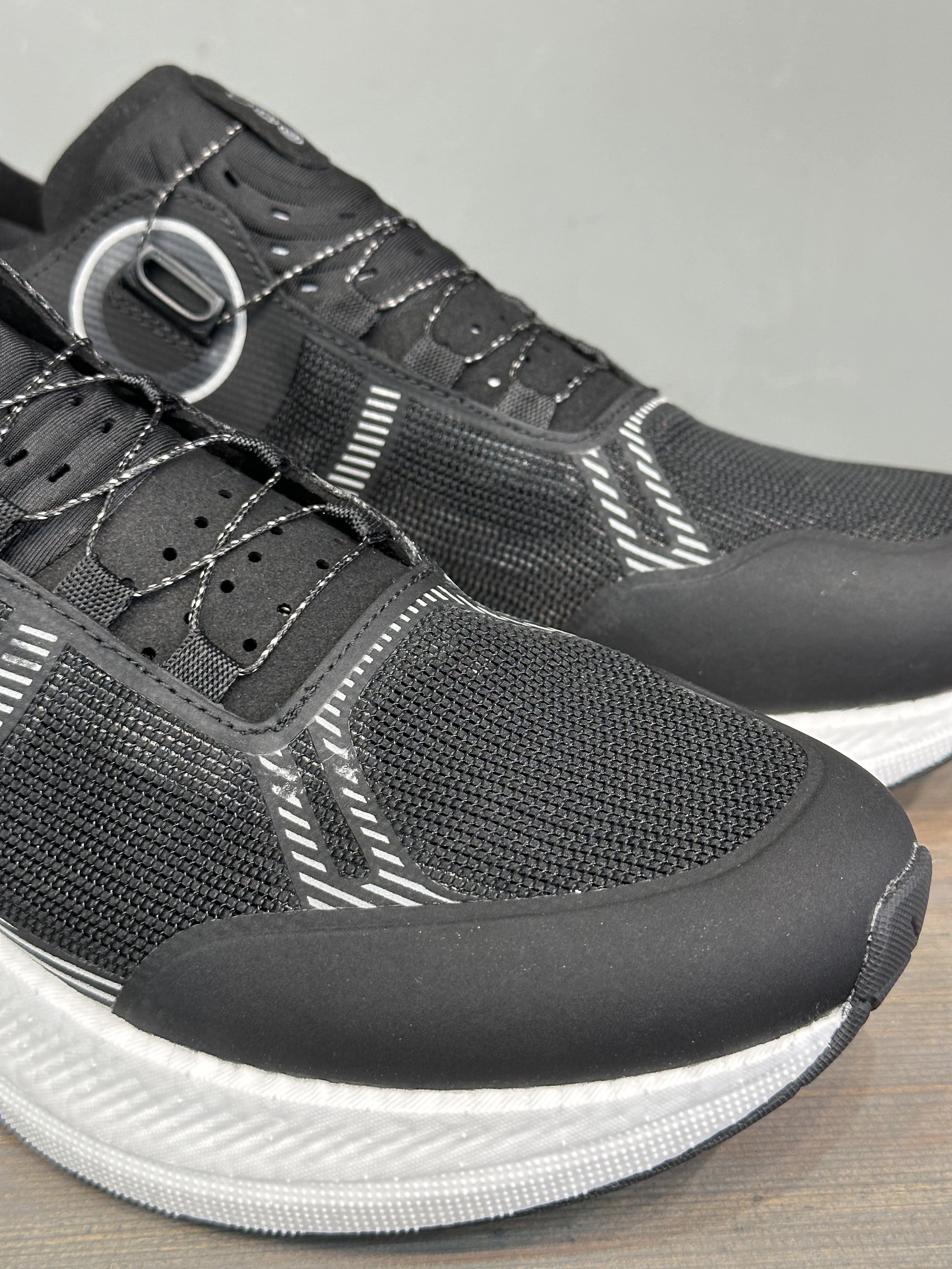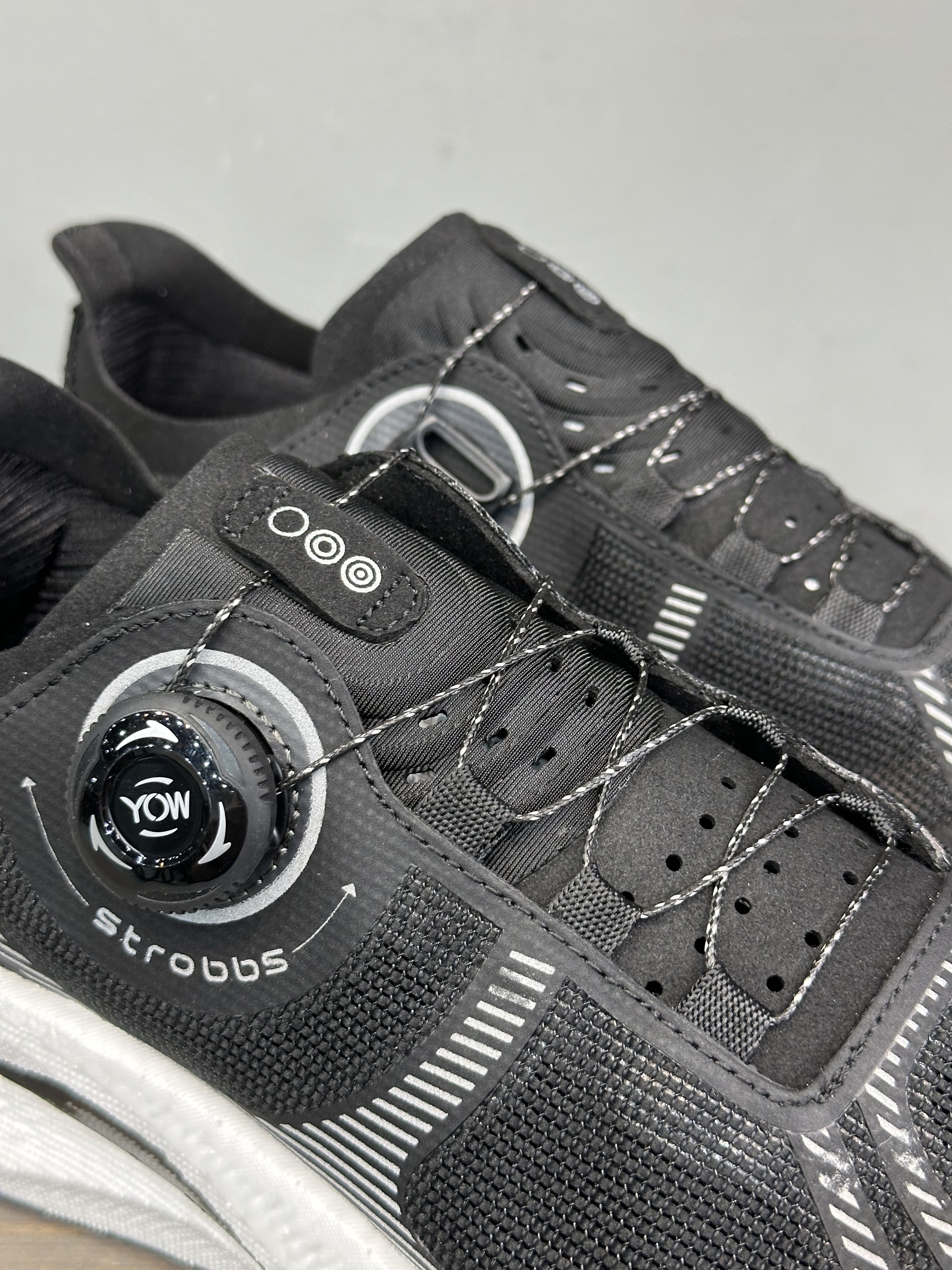 Система быстрой шнуровки :- позволяет легко и быстро надевать, и снимать обувь. Она обеспечивает надёжную фиксацию стопы и комфорт во время носки. Фиксация на ноге происходит с помощью эластичных шнурков и фиксаторов, которая позволяет зафиксировать ногу