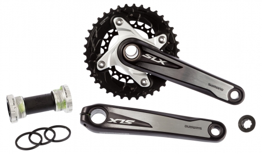 Кованая полая конструкция, двуцветные алюминиевые шатуны с усиленным пауком и интегрированной кареткой HollowTech II (HT2) для повышения коэффициента передачи усилия