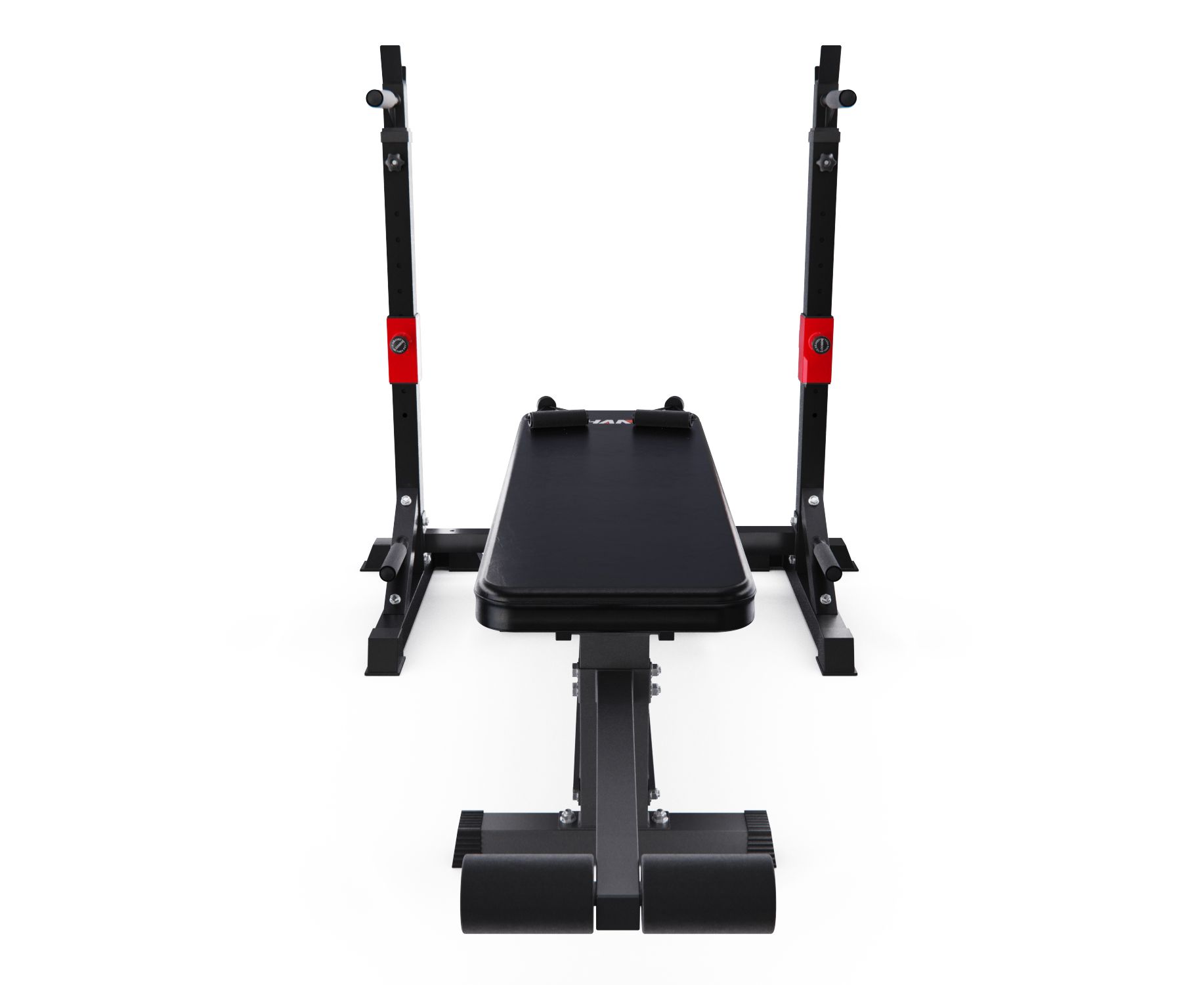 Стойки под штангу выдерживают нагрузку до 385 кг и изготовлены из утолщенной стали с порошковым покрытием, чтобы обеспечить безопасность при каждой тренировке. Высота стоек регулируется от 109,7 до 181,9 см на 15 уровней, а ширина на 4 уровня от 71,8 до 122,2 см. Шаг регулировки высоты стоек 5 см, а регулировки ширины – 16,5 см.
