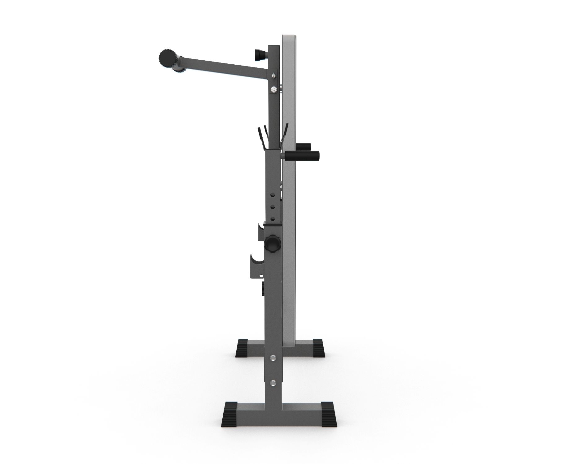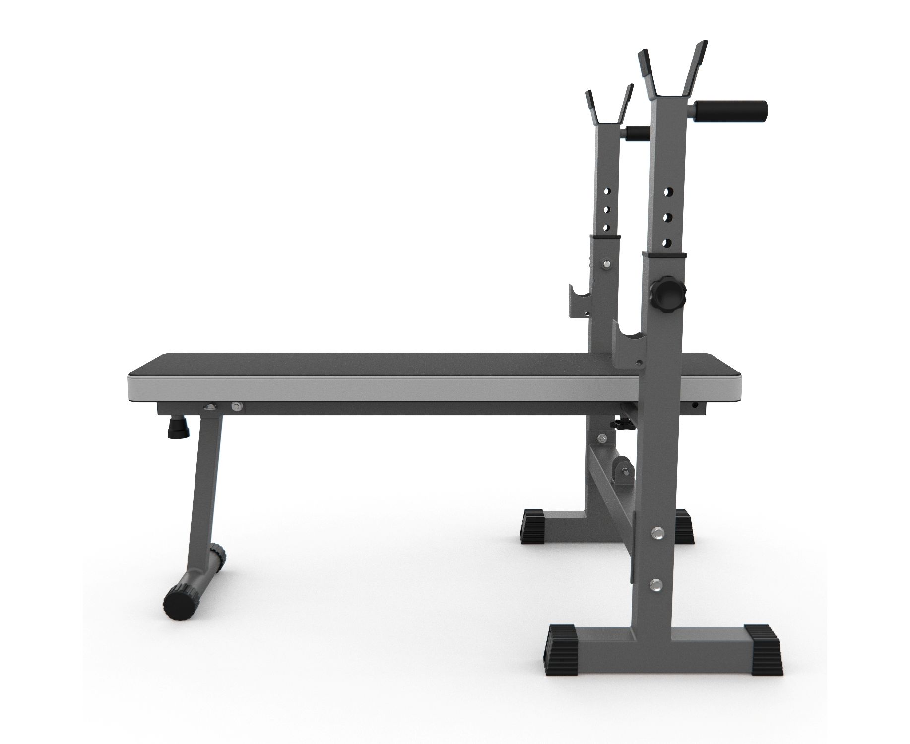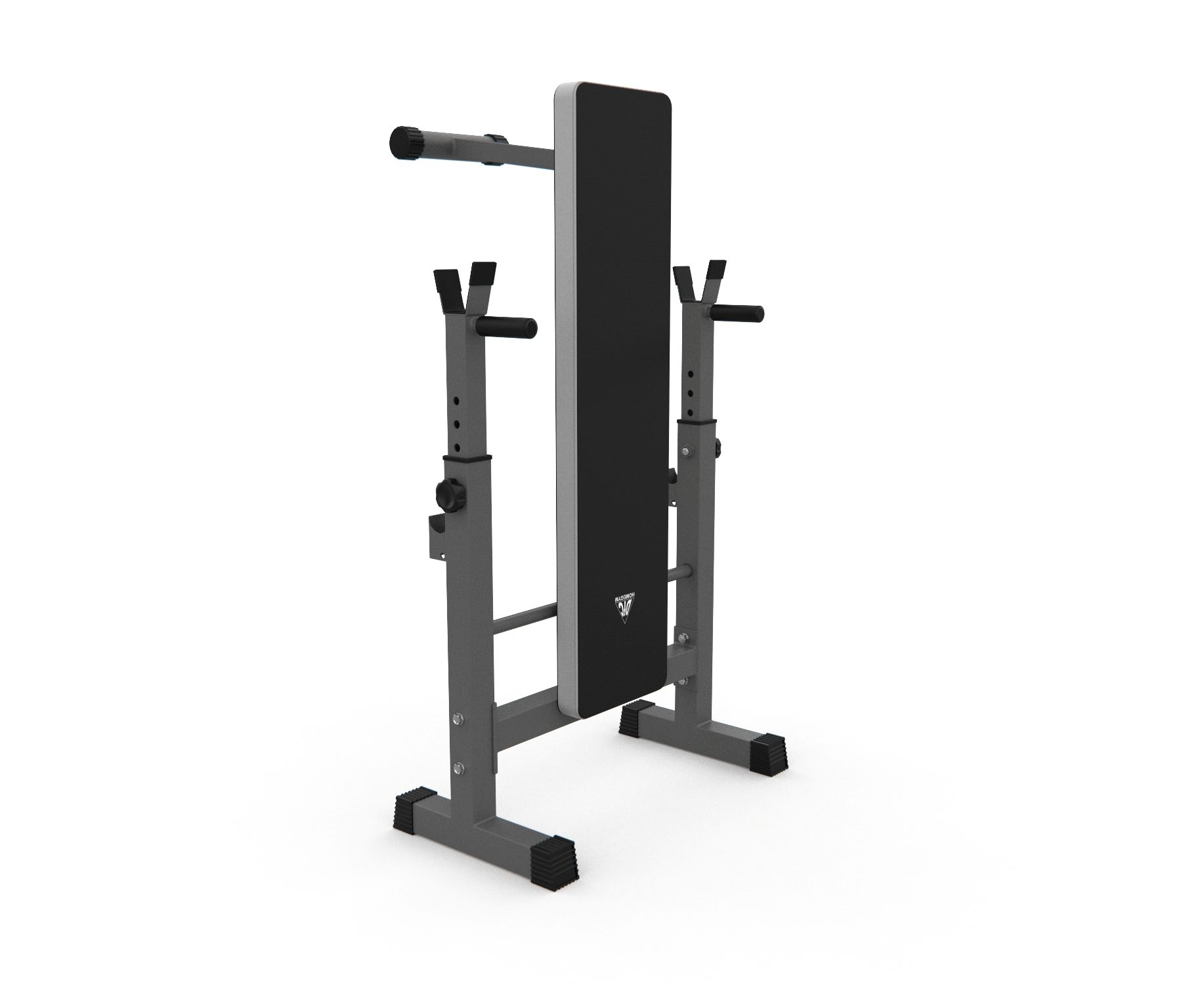Стойки регулируются по высоте на 6 уровней от 79,5 до 97 см, что позволяет использовать скамью для людей разного роста. Высота от пола до скамьи составляет 44 см, длина опорных ножек стойки - 34,5 см, расстояние от задних до передних ножек стойки – 105 см.