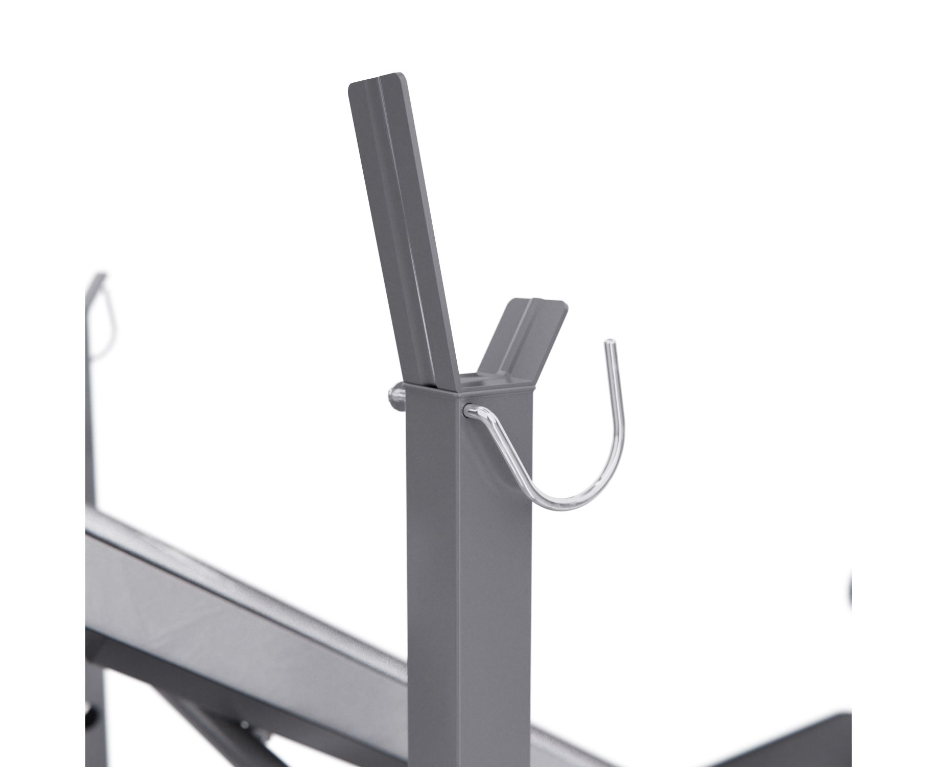 Максимальная общая нагрузка на тренажёр составляет 150 кг, включая вес пользователя и все грузовые пластины. Внутреннее расстояние между стойками составляет 51 см, что обеспечивает удобство при выполнении упражнений.