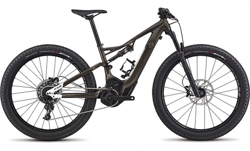 Горный велосипед Specialized Turbo Levo WMN FSR ST 6Fattie (2017), двухподвес для трейла и фрирайда на колёсах 650b (27.5 дюймов) с подключаемой электрической тягой на подъёмах. Предназначен спортсменам и любителям MTB для тренировок и любительских заездов.