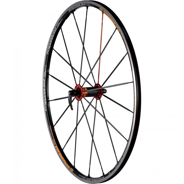 Совместимость: Кассеты SHIMANO и CAMPAGNOLO. KSYRIUM SSC SL с новым дизайном, более легким весом вошли в 2008 год. Обновленные колеса черного и красного цвета имеют статус лидера в своем классе. Новая передняя втулка со сложными фланцами уменьшила вес колеса и прибавила жесткость. Переднее колесо собранно радиально на 18 спицы. Эти колеса созданы для гонок на шоссе.