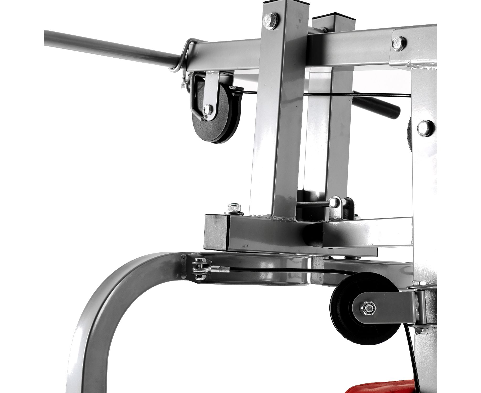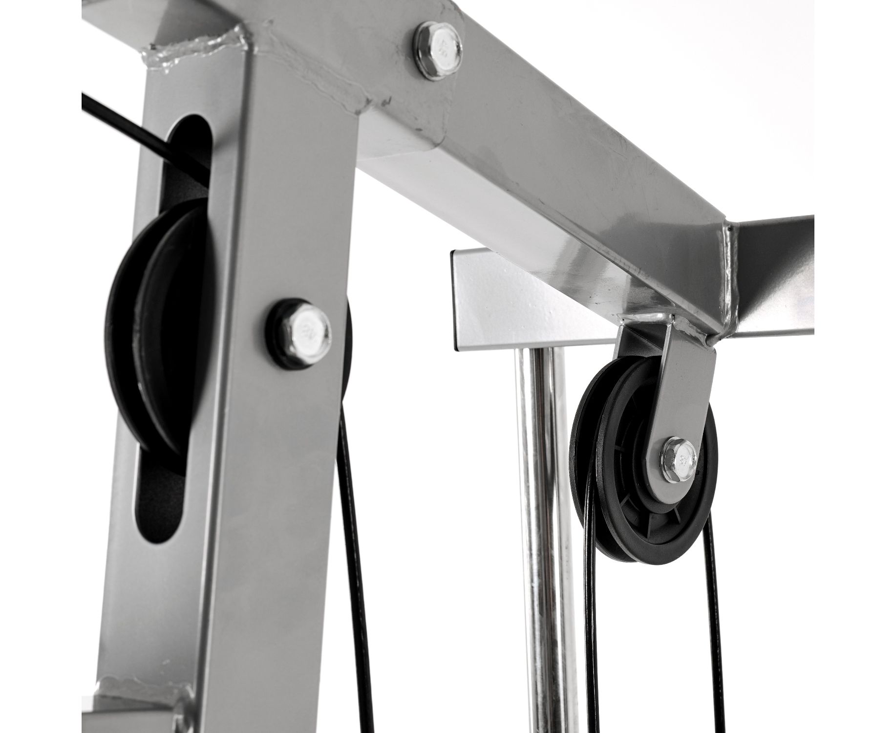 Комплекс не требует дополнительных снарядов - он полностью автономный. В комплект входит весовой стек массой 45 кг: 9 пластин по 4,5 кг и верхняя пластина 5 кг. Ролики на подшипниках обеспечивают плавное движение. Стальной трос толщиной 4 мм в защитной оплетке так же гарантирует безопасность при выполнении упражнений.