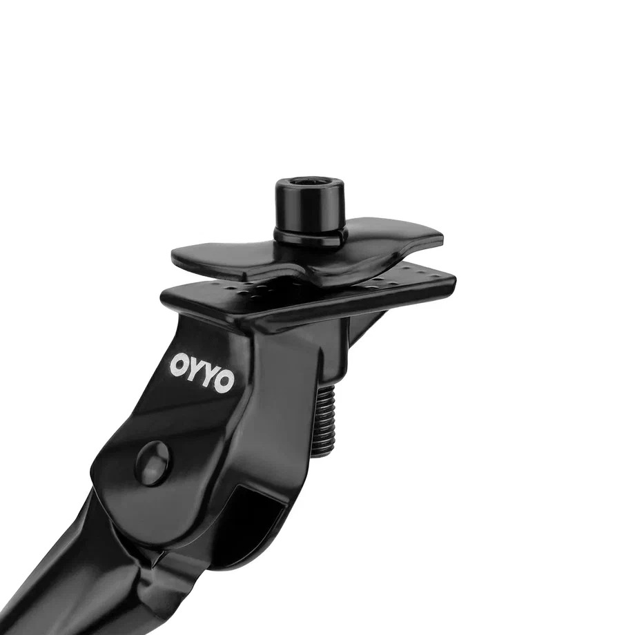 Данная подножка подходит для велосипедов с диаметром колес от 16 до 20 дюймов благодаря встроенному механизму регулировки длины. Монтаж осуществляется в центральной части рамы, за кареточным узлом, с использованием винта с шестигранной головкой на штатное посадочное место или прижимную пластину. Подножка выполнена из устойчивого к коррозии алюминиевого сплава, а опорная площадка — из износостойкого полимерного материала. Благодаря увеличенной площади наконечника, подножка обеспечивает отличную устойчивость велосипеда даже на неровных поверхностях и мягком грунте.