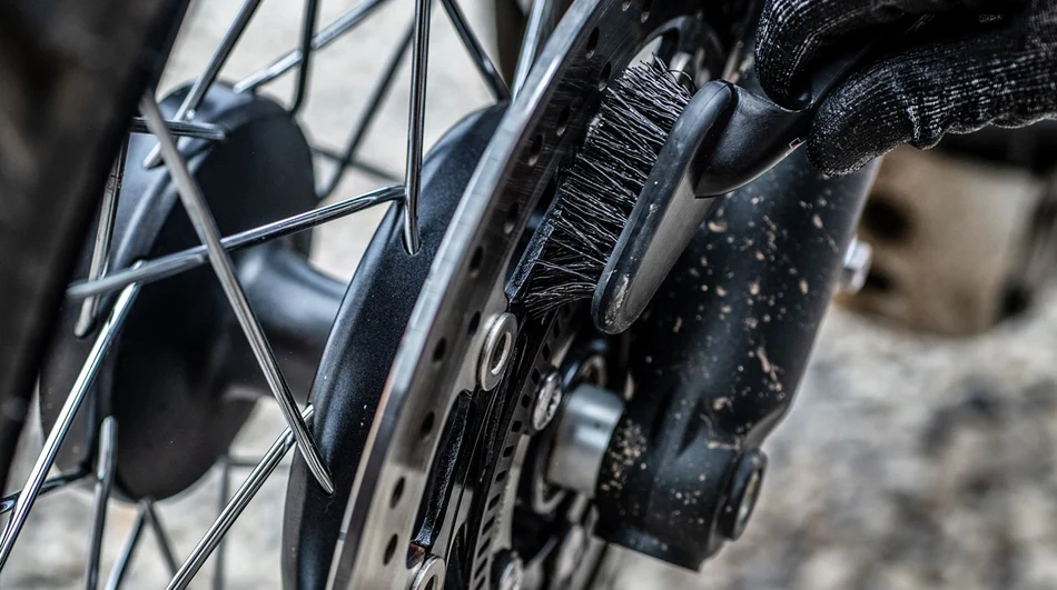 щетка для мытья идеально подходит для очистки труднодоступных мест, таких как крепления подвески или коронки вилки.