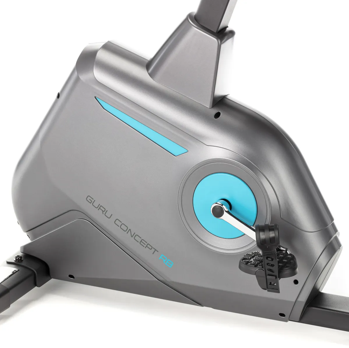 Интеграционные технологии Bluetooth позволяют взаимодействовать с тренировочными мобильными приложениями, такими как Kinomap™ и Zwift™, а также присутствует возможность подключения нагрудного датчика пульса (приобретается отдельно), дополняя тренировку новыми возможностями и вдохновляя на новые достижения. С GURU CONCEPT RB вы сможете создать идеальный путь к здоровью и фитнесу, наслаждаясь комфортом и эффективностью этого уникального тренажера.